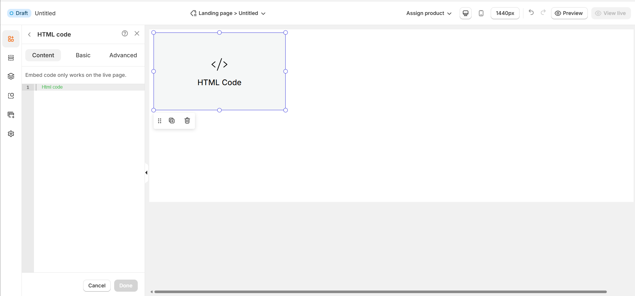 HTML Code element: Lets you insert custom HTML, CSS, or JavaScript code for more control or third-party integrations (widgets, tracking scripts, etc.).