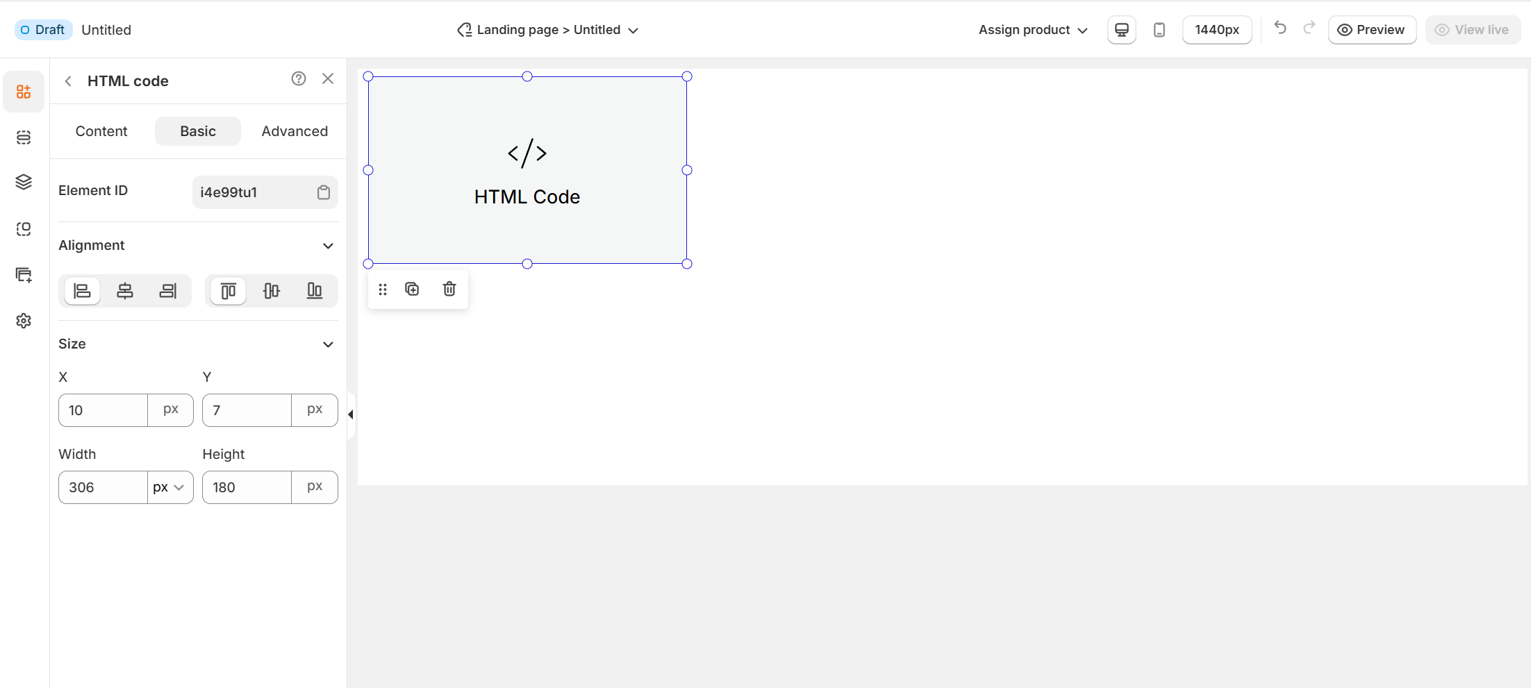 The Basic tab lets you control the size, alignment, and exact placement of your HTML code element on the page.