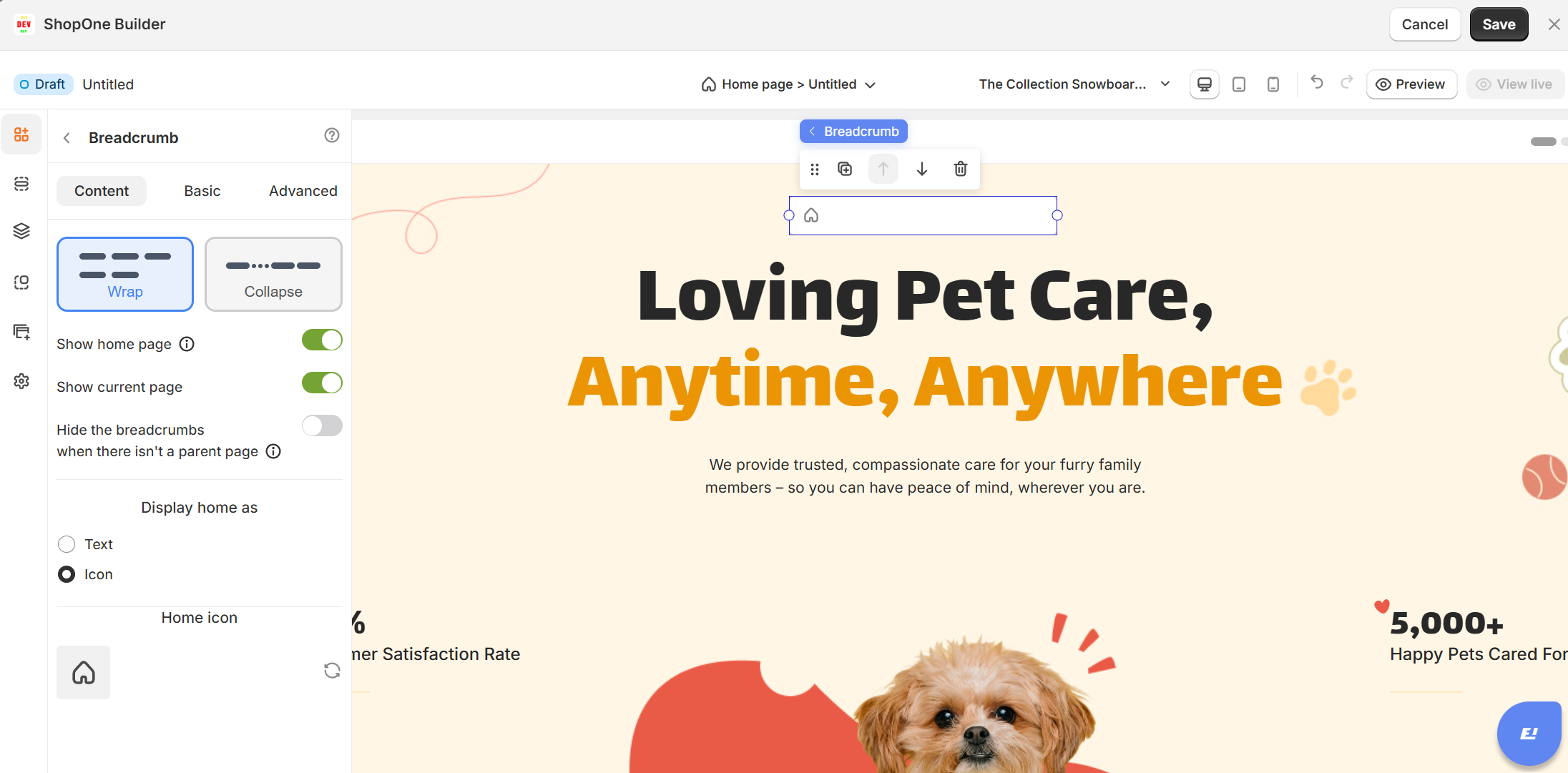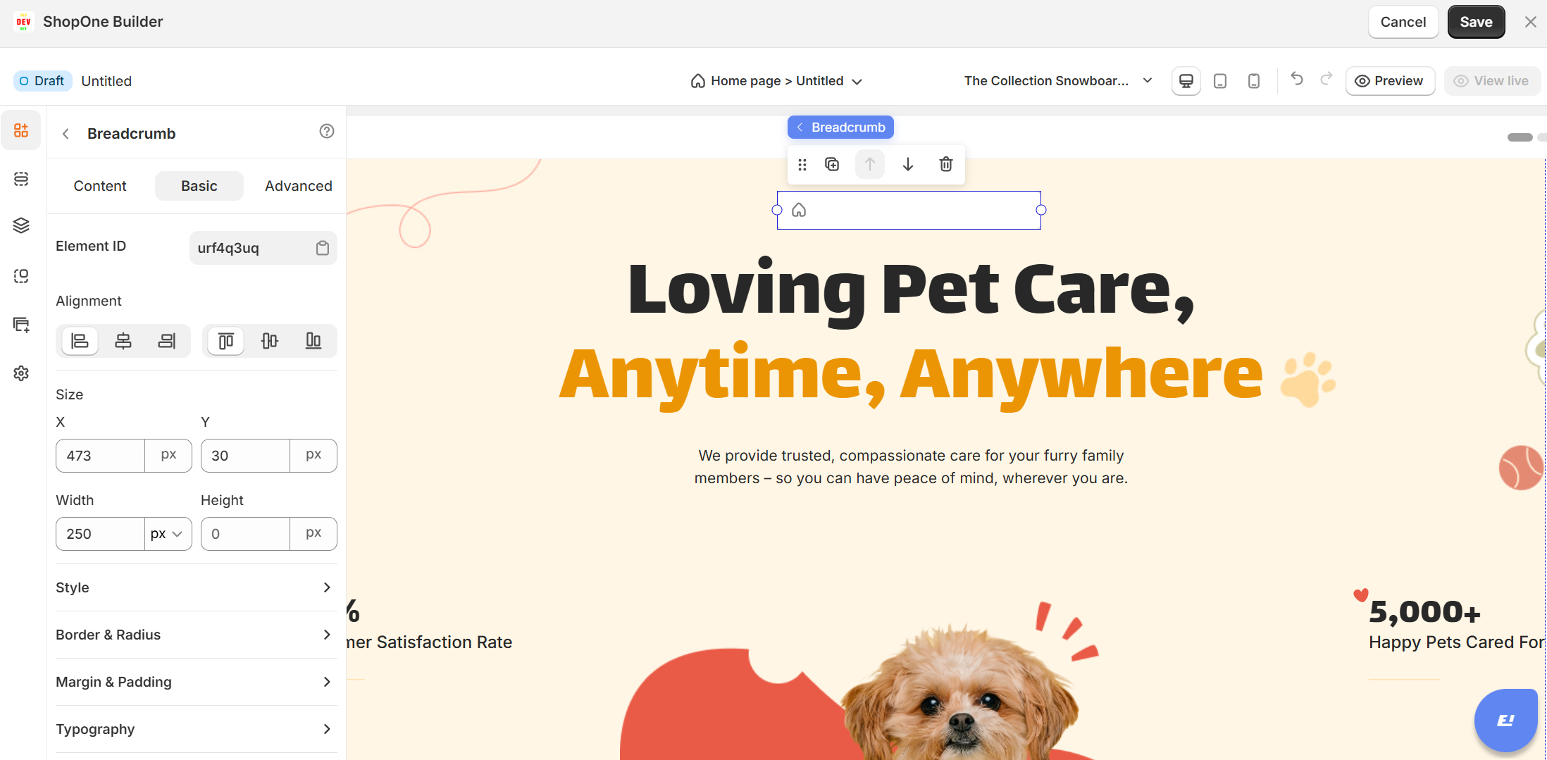 Width & Height: Defines the breadcrumb’s size. (Height is often auto since it adjusts to the text size.)