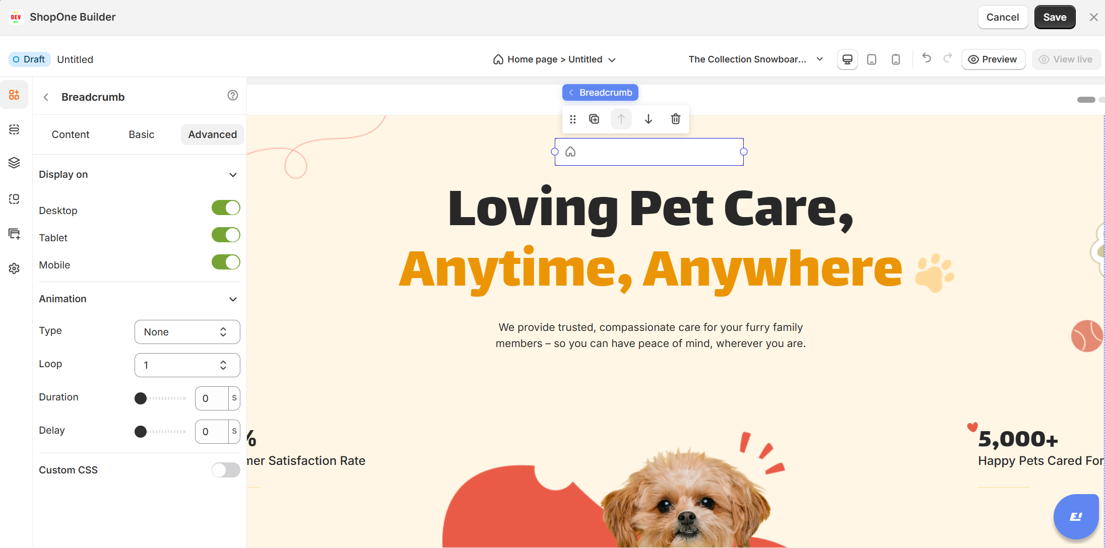 - Type: Choose an animation style (e.g., fade, slide, bounce).