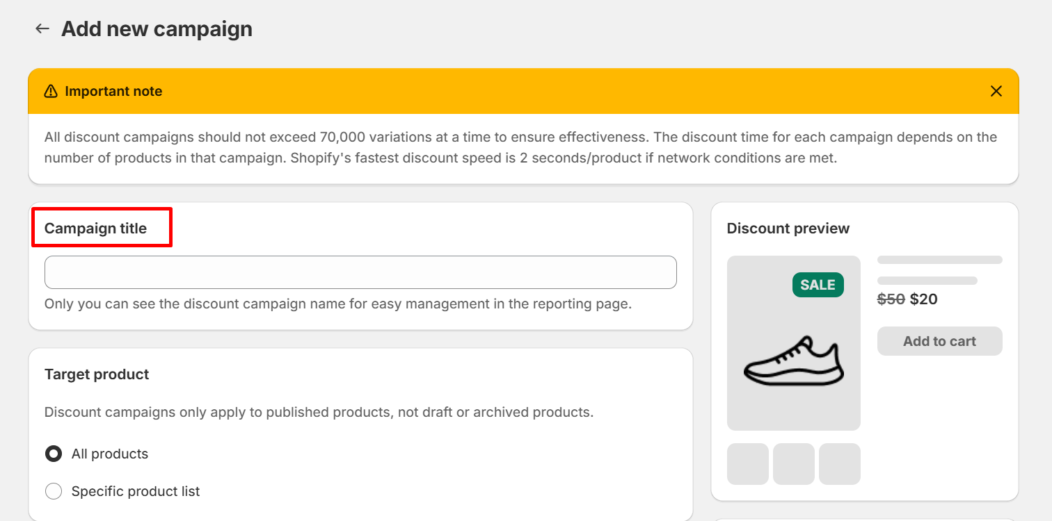 Step 1: Create a name for your discount campaign