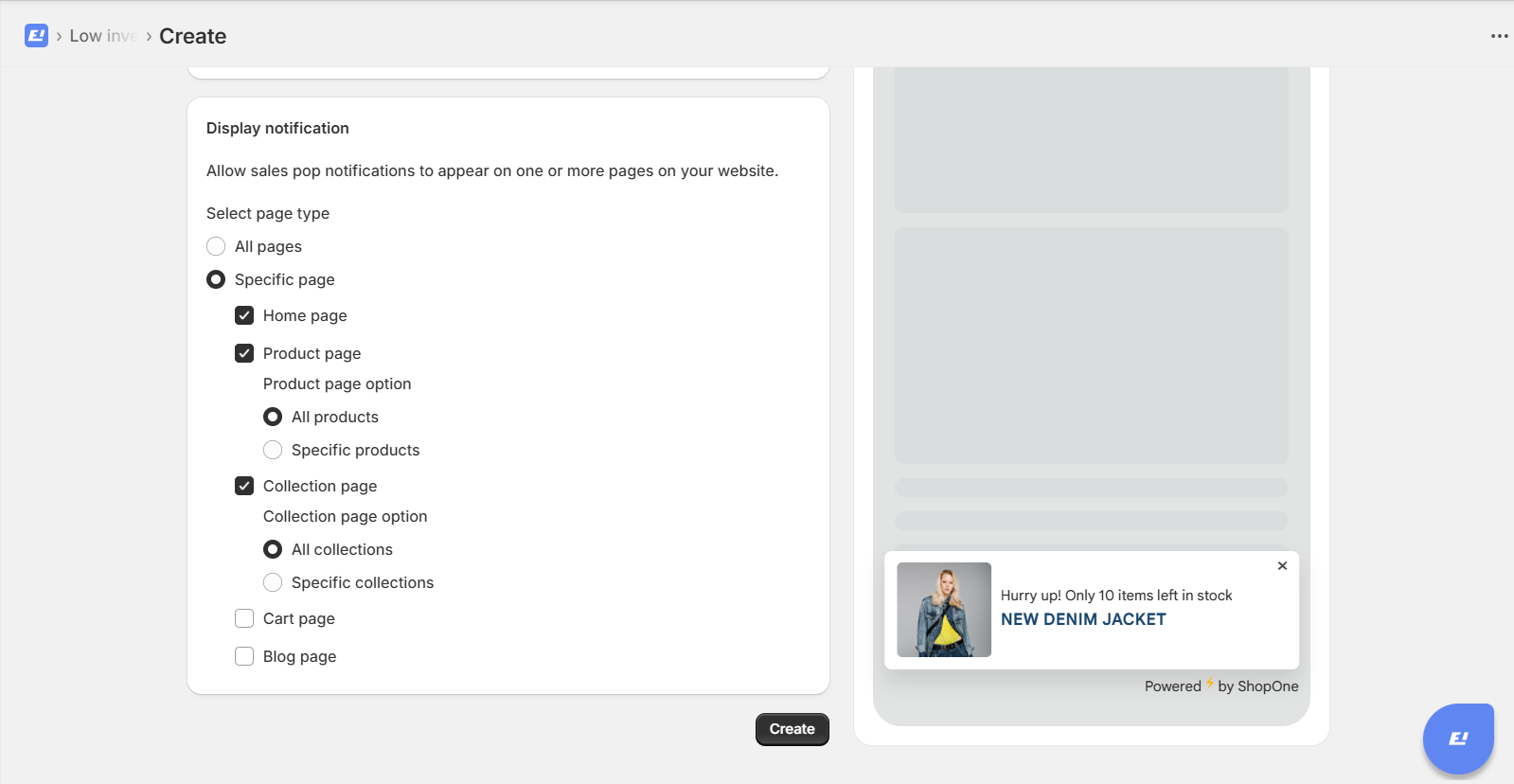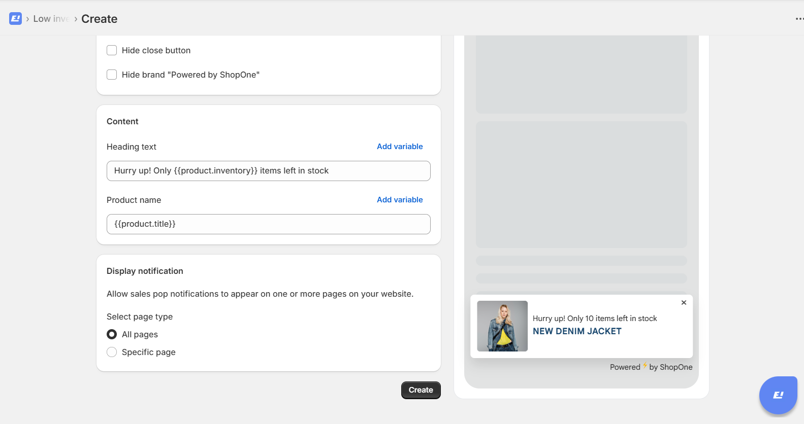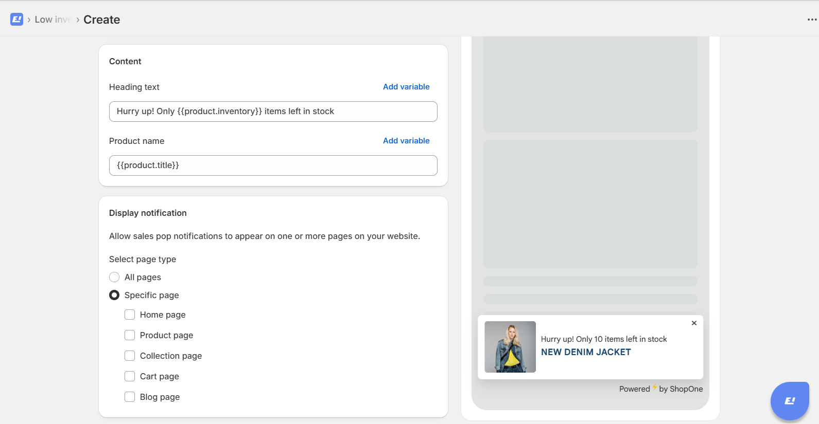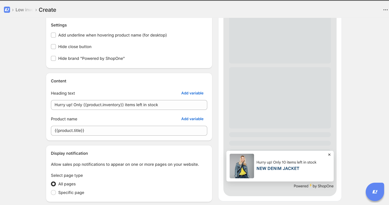 Go to the ShopOne Sales Popup app